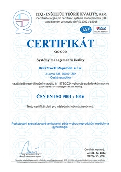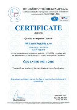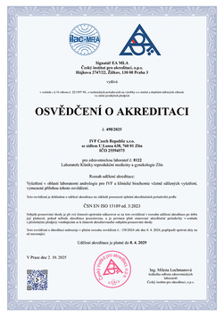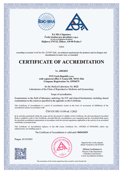 The highest success rate of treatment is achieved in IVF cycles with donated oocytes. Over 65% of patients (demonstrated by cardiac action) become pregnant usually after transferring five-day-old embryos. In IVF treatment cycles of patients below 38 years of age with their own oocytes and in cryo-embryo transfer in all patients with no age differentiation, the success rate of treatment is slightly below 50% (again demonstrated by cardiac action). In IVF cycles of patients over 38 years with their own oocytes, the treatment success rate is almost 30%. The results show that one of the decisive factors for successful treatment is the patient’s age.